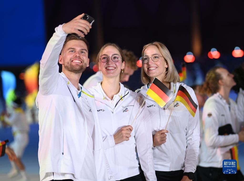 7月28日,德國(guó)大學(xué)生體育代表團(tuán)在開幕式上入場(chǎng)。