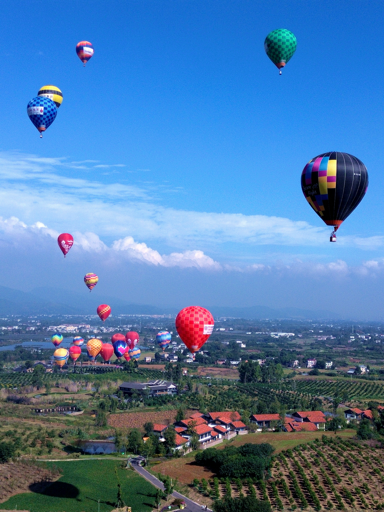 隨著開(kāi)幕儀式的推進(jìn),30支熱氣球依次完成點(diǎn)火、充氣,在歡呼聲中緩緩升空。紅黃藍(lán)綠的熱氣球與郁郁蔥蔥的柑橘園、錯(cuò)落有致的川西民居相映成趣,構(gòu)成一幅絕美畫卷。據(jù)了解,此次全國(guó)熱氣球精英賽(四川金堂站)作為活動(dòng)核心賽事,將在10月15日-19日期間開(kāi)展游蕩華爾茲、定點(diǎn)投靶、肘形飛行等10余項(xiàng)專業(yè)競(jìng)技項(xiàng)目,最讓人期待的是本次賽事將熱氣球飛躍龍泉山作為了長(zhǎng)距離飛行的競(jìng)賽科目,這將是熱氣球首次飛越龍泉山。屆時(shí),參賽選手在比賽的同時(shí)還可以在空中觀賞龍泉山脈、千里沱江、絕美古剎等景觀。