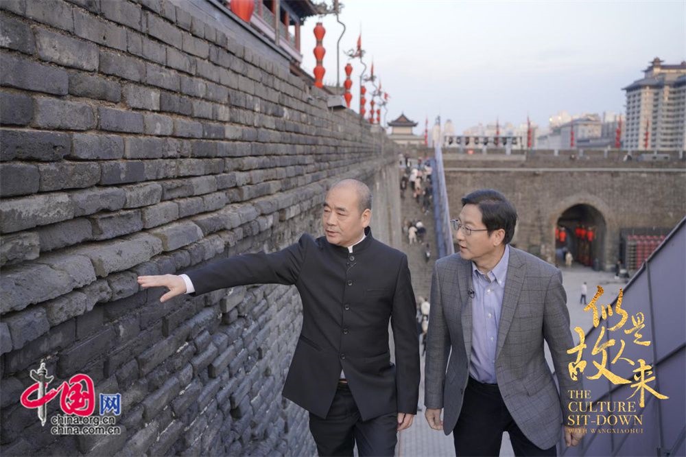 王曉輝(右一)與侯寧彬在西安城墻 中國(guó)網(wǎng) 記者 胡俊 攝