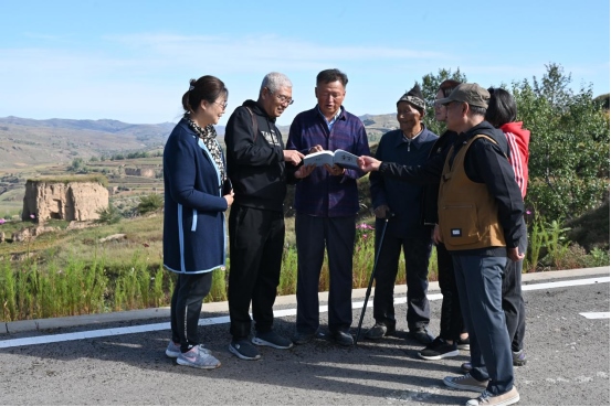 為了助推清水河縣全力推進(jìn)長(zhǎng)城國(guó)家文化公園項(xiàng)目建設(shè),呼和浩特市長(zhǎng)城科普學(xué)會(huì)會(huì)員們到達(dá)馬頭山下的小元峁段明長(zhǎng)城、川峁村鴻門口馬市遺址、水泉鎮(zhèn)紅(鴻)門口地下長(zhǎng)城博物館后,顧不得旅途勞頓和登山困乏,立即開展考察工作、拍照、察看、比對(duì)、討論,將學(xué)會(huì)出版的《長(zhǎng)城烽火》《中國(guó)歷代長(zhǎng)城詩大全》《情系長(zhǎng)城》等書籍贈(zèng)送給水泉鎮(zhèn)政府,為智庫專家高振清贈(zèng)送聘書,聽他講解鴻門口的歷史。