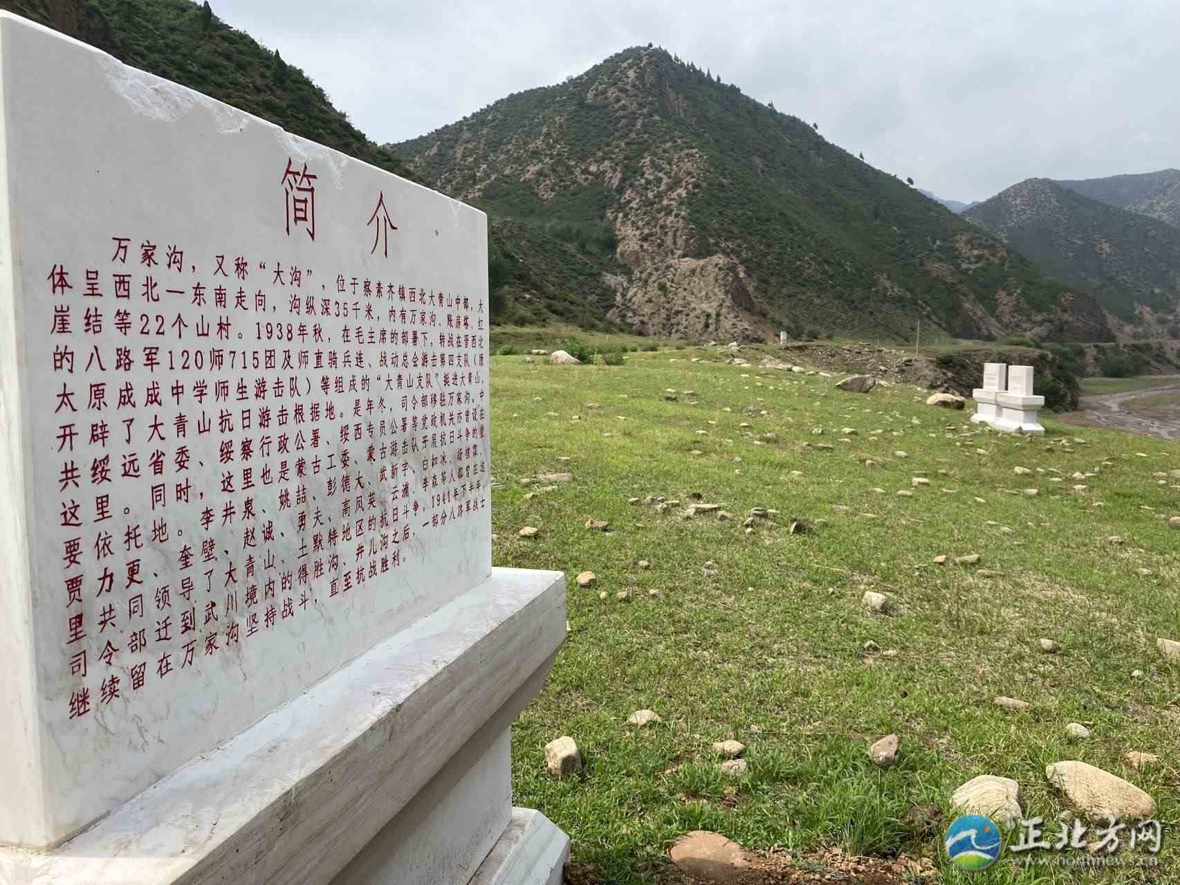 入溝不久,在綠草如茵的山坡上,就可以眺望到遠(yuǎn)處已經(jīng)廢棄的民房,有幾十年前的老房子,也有建筑時(shí)間不長(zhǎng)的,眼前的一切讓人恍惚,仿佛剛剛還在上演煙火氣息的鄉(xiāng)村生活。在這里矗立著寫有“萬(wàn)家溝革命遺址”的漢白玉紀(jì)念碑,這是土左旗文物保護(hù)中心副主任高鷹和同事們半年前安放的。從這里,萬(wàn)家溝革命遺址的探訪正式開(kāi)始。