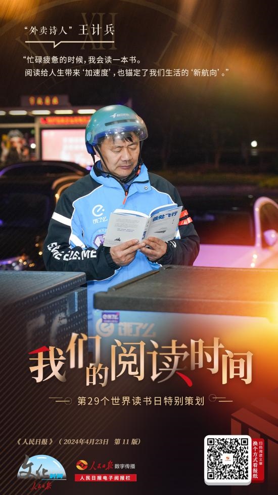 “我的外賣箱里總會放一本書,在等外賣的間隙或者訂單空閑的時候看,現(xiàn)在主要在手機上閱讀?!比缃?,王計兵已創(chuàng)作5000多首詩歌,出版3本詩集,還在進行非虛構寫作。他說:“閱讀給我的人生帶來‘加速度’,為忙碌的生活錨定方向感?!?/p>