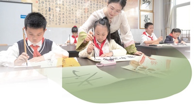 安徽合肥市小學(xué)生正在書寫家風(fēng)家訓(xùn)。趙 明攝(影像中國)