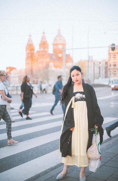 這些年,彭靜旋變得越發(fā)喜歡研究中國(guó)不同朝代的服飾,了解它們的演變和特點(diǎn)。為了正確傳遞中國(guó)服飾文化,她用心準(zhǔn)備每一次演出妝造,哪首曲子配哪個(gè)朝代的服飾,哪種服裝制式配哪種發(fā)型,都很有講究。在她的影響下,周?chē)耐鈬?guó)同學(xué)、朋友也被她帶進(jìn)了漢服的“深坑”,愛(ài)上了中華服飾。