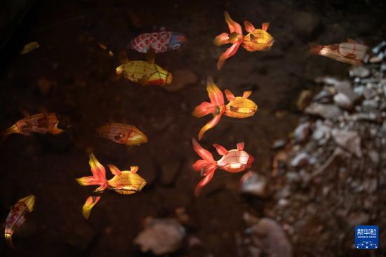 這是1月10日在安徽省黃山市歙縣北岸鎮(zhèn)瞻淇村拍攝的魚燈倒影。