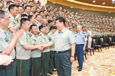 7月15日至16日,中共中央總書記、國(guó)家主席、中央軍委主席習(xí)近平在內(nèi)蒙古考察并指導(dǎo)開展“不忘初心、牢記使命”主題教育。這是16日上午,習(xí)近平在呼和浩特親切接見駐內(nèi)蒙古部隊(duì)副師職以上領(lǐng)導(dǎo)干部和團(tuán)級(jí)單位主官,代表黨中央和中央軍委向駐內(nèi)蒙古部隊(duì)全體官兵致以誠(chéng)摯問候?! ⌒氯A社記者 李 剛攝