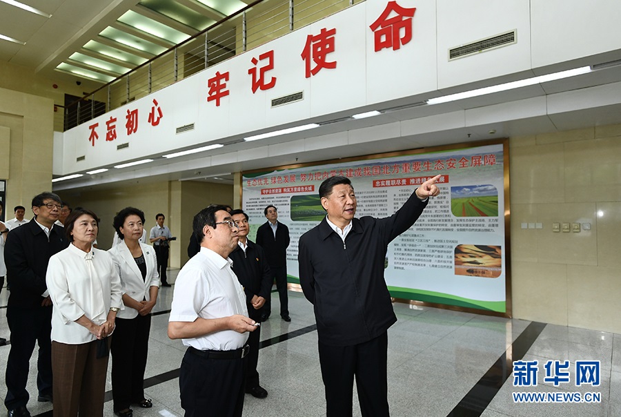 7月15日至16日,中共中央總書記、國家主席、中央軍委主席習近平在內(nèi)蒙古考察并指導開展“不忘初心、牢記使命”主題教育。這是16日,習近平在內(nèi)蒙古自治區(qū)自然資源廳調(diào)研指導開展“不忘初心、牢記使命”主題教育。新華社記者 謝環(huán)馳 攝