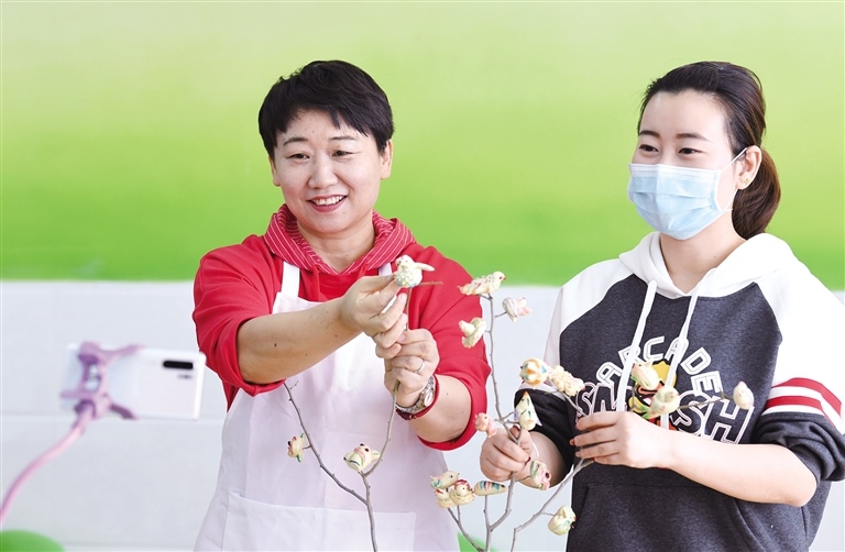 4月3日,呼和浩特市玉泉區(qū)通順街小學(xué)老師在直播中展示面塑“寒燕兒”的制作技藝。清明節(jié)將至,通順街小學(xué)開展“清明時節(jié)寒燕兒炫彩”線上傳統(tǒng)文化課活動。通過視頻直播、錄播等形式,向同學(xué)們介紹當(dāng)?shù)厍迕鲿r節(jié)特色面塑“寒燕兒”的制作技藝,讓孩子們了解清明節(jié)習(xí)俗,感受傳統(tǒng)文化魅力。據(jù)悉,北方民間每到清明節(jié)來臨的時候,家家戶戶都有蒸面塑“寒燕兒”的習(xí)俗。內(nèi)蒙古日報融媒體記者 王磊 攝