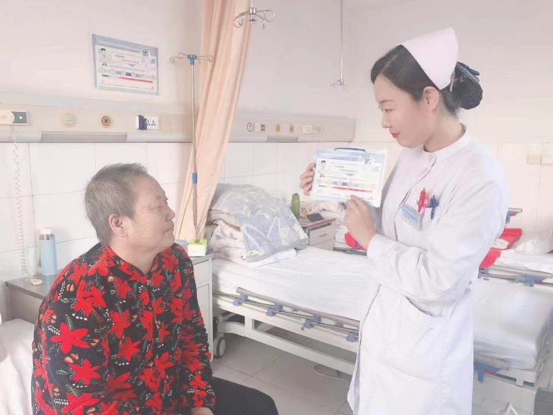腫瘤放射治療科護(hù)士在護(hù)士長的帶領(lǐng)下對腫瘤患者進(jìn)行健康宣教