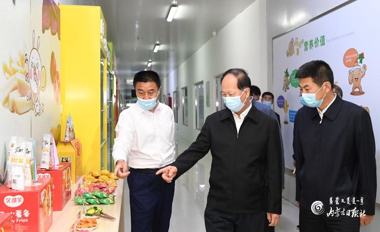 7月2日,自治區(qū)黨委書(shū)記、人大常委會(huì)主任石泰峰深入烏蘭察布市察右前旗內(nèi)蒙古薯都凱達(dá)食品有限公司,了解京蒙對(duì)口幫扶企業(yè)馬鈴薯產(chǎn)品生產(chǎn)銷售情況。內(nèi)蒙古日?qǐng)?bào)社融媒體記者 袁永紅 攝
