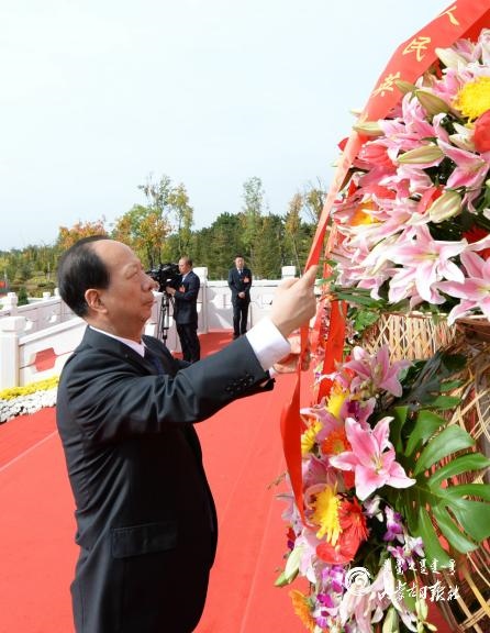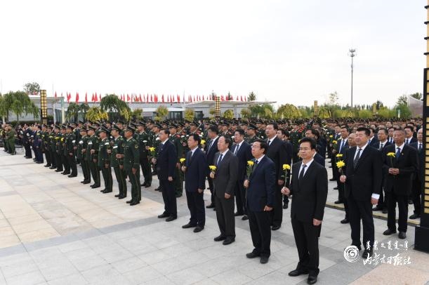 9月30日上午,烈士紀(jì)念日向人民英雄敬獻(xiàn)花籃儀式在呼和浩特隆重舉行。自治區(qū)黨委書(shū)記、人大常委會(huì)主任石泰峰,自治區(qū)黨委副書(shū)記、自治區(qū)主席布小林,自治區(qū)政協(xié)主席李秀領(lǐng)等自治區(qū)省軍級(jí)領(lǐng)導(dǎo)同志來(lái)到大青山紅色文化公園烈士紀(jì)念碑廣場(chǎng),與首府各族各界代表一起出席儀式。內(nèi)蒙古日?qǐng)?bào)社融媒體記者 袁永紅 攝