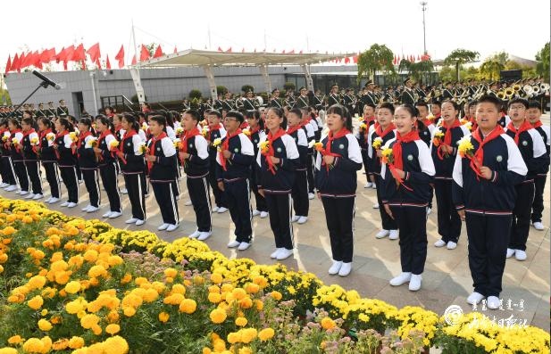 9月30日上午,烈士紀(jì)念日向人民英雄敬獻(xiàn)花籃儀式在呼和浩特隆重舉行,少先隊(duì)員獻(xiàn)唱《我們是共產(chǎn)主義接班人》。內(nèi)蒙古日?qǐng)?bào)社融媒體記者 袁永紅 攝