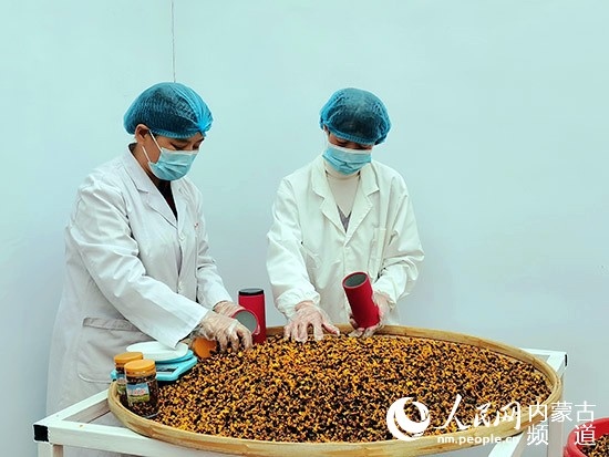 雪菊加工廠的工人正在裝罐。人民網(wǎng) 王慧攝