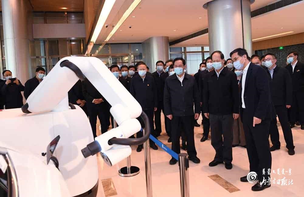 4月19日,自治區(qū)黨委書記、人大常委會主任石泰峰率內(nèi)蒙古黨政考察團(tuán)在遠(yuǎn)景科技集團(tuán)學(xué)習(xí)考察。內(nèi)蒙古日報(bào)社融媒體記者 袁永紅 攝
