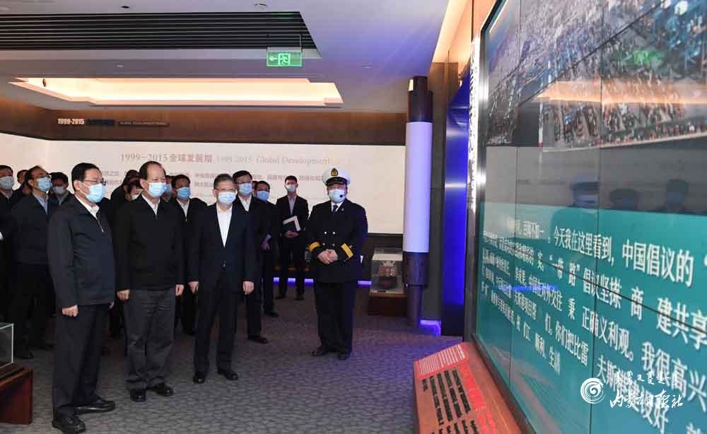 4月19日,自治區(qū)黨委書記、人大常委會主任石泰峰率內(nèi)蒙古黨政考察團(tuán)在中國遠(yuǎn)洋海運(yùn)集團(tuán)學(xué)習(xí)考察。內(nèi)蒙古日報(bào)社融媒體記者 袁永紅 攝