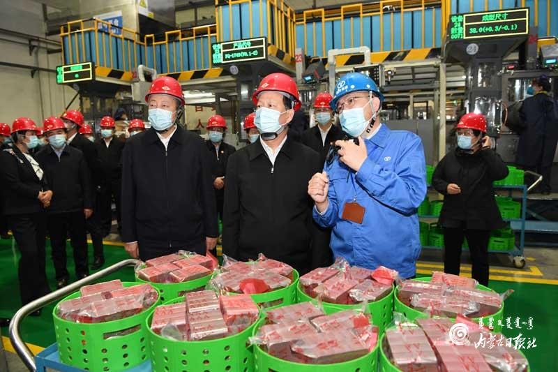 4月21日,自治區(qū)黨委書(shū)記、人大常委會(huì)主任石泰峰,與參加自治區(qū)推動(dòng)高質(zhì)量發(fā)展重大項(xiàng)目建設(shè)動(dòng)員大會(huì)的代表一起觀摩南高齒(包頭)傳動(dòng)設(shè)備有限公司風(fēng)電齒輪箱二期擴(kuò)建項(xiàng)目。內(nèi)蒙古日?qǐng)?bào)社融媒體記者 袁永紅 攝