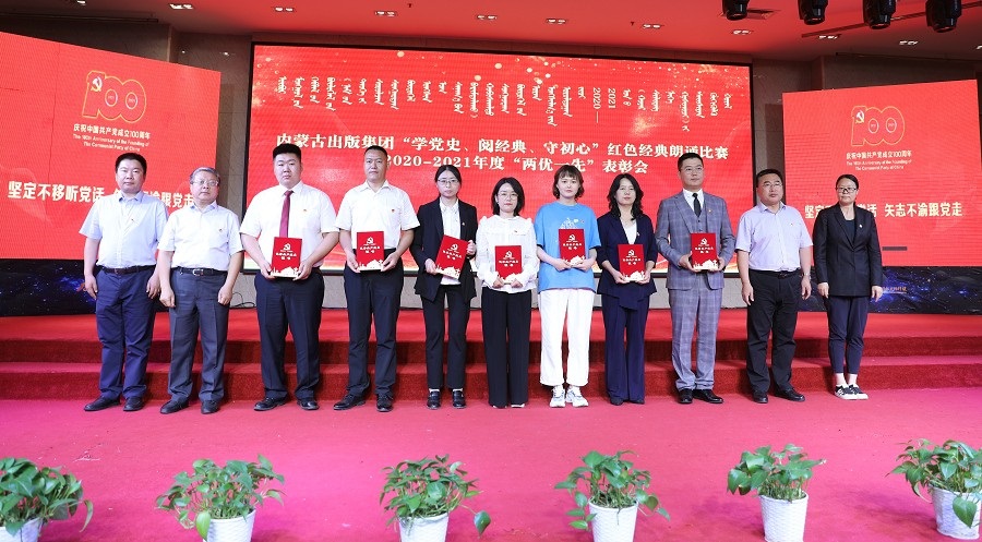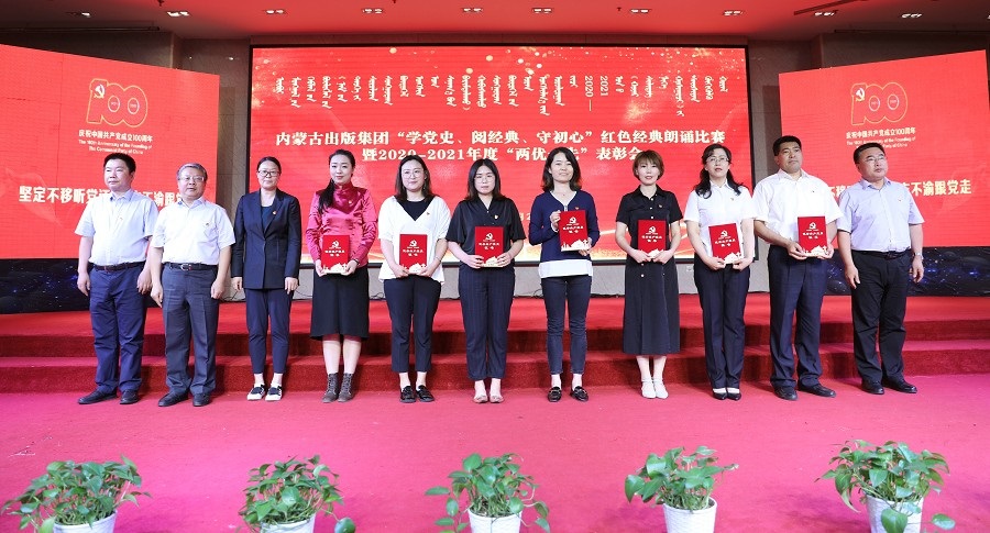 集團黨委委員、副總經理扎拉根宣讀表彰決定,對內蒙古人民出版社第四黨支部、內蒙古教育出版社第三黨支部、內蒙古新華報業(yè)中心第二黨支部、內蒙古文化出版社黨支部4個先進基層黨組織,包斯日古楞等20名優(yōu)秀共產黨員,羅芳林等14名優(yōu)秀黨務工作者予以表彰。