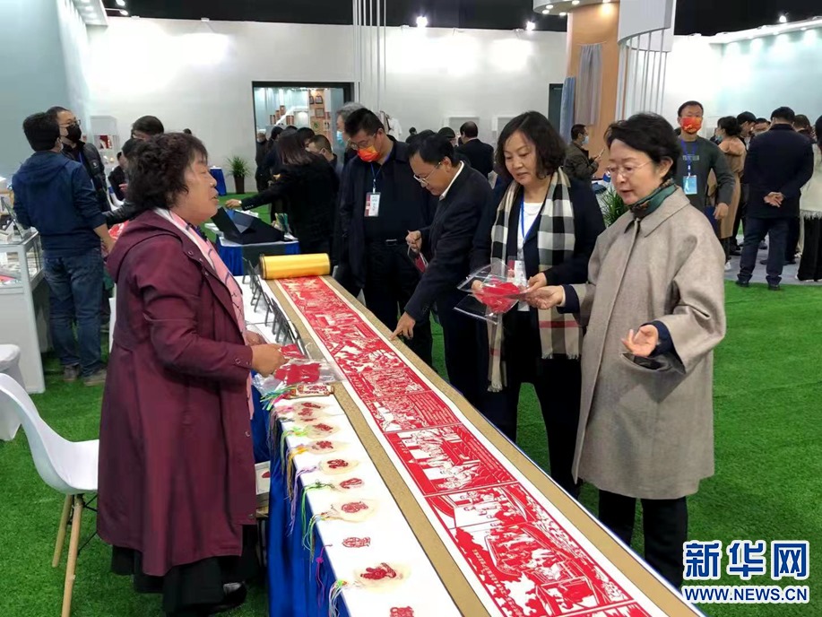 參會嘉賓在傳統(tǒng)手工藝品、文創(chuàng)產品展覽展示區(qū)參觀。新華網 李國棟 攝