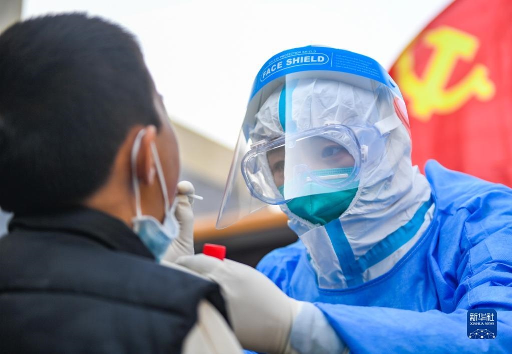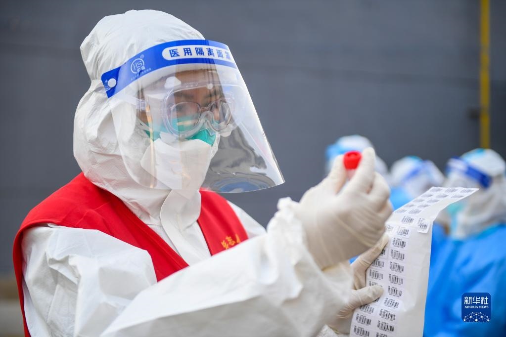 連日來(lái),在呼和浩特市的戰(zhàn)“疫”路上,志愿者沖鋒在前。他們協(xié)助開展核酸檢測(cè)、社區(qū)管控等工作,為筑牢防疫安全屏障貢獻(xiàn)自己的力量。(新華社記者 彭源攝)
