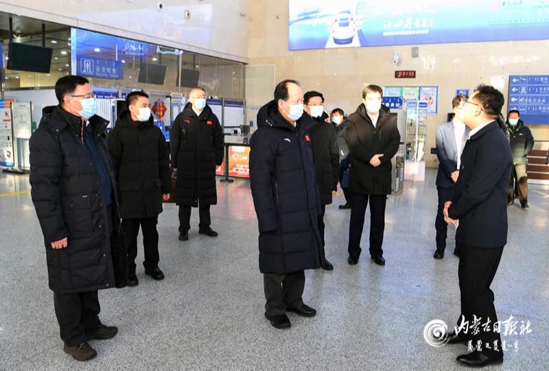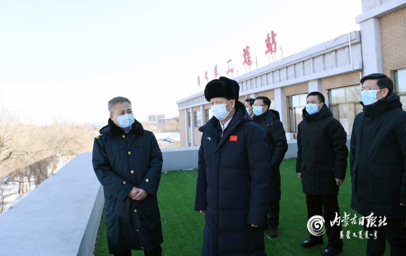 2月4日,自治區(qū)黨委書記、人大常委會主任石泰峰來到二連浩特鐵路車站,了解疫情防控和中歐班列運行情況。內(nèi)蒙古日報社融媒體記者袁永紅攝