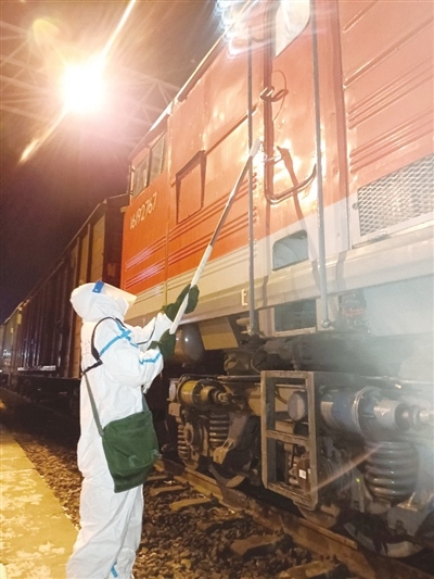 田潤澤告訴記者,“通過‘無接觸’查驗(yàn)、磁條封控車門,避免了跨境列車司機(jī)與邊檢、海關(guān)工作人員的直接接觸,最大限度降低交叉感染的風(fēng)險(xiǎn),確保司機(jī)在國內(nèi)停留的數(shù)小時(shí)內(nèi)不下車、不與外界接觸?!?/p>