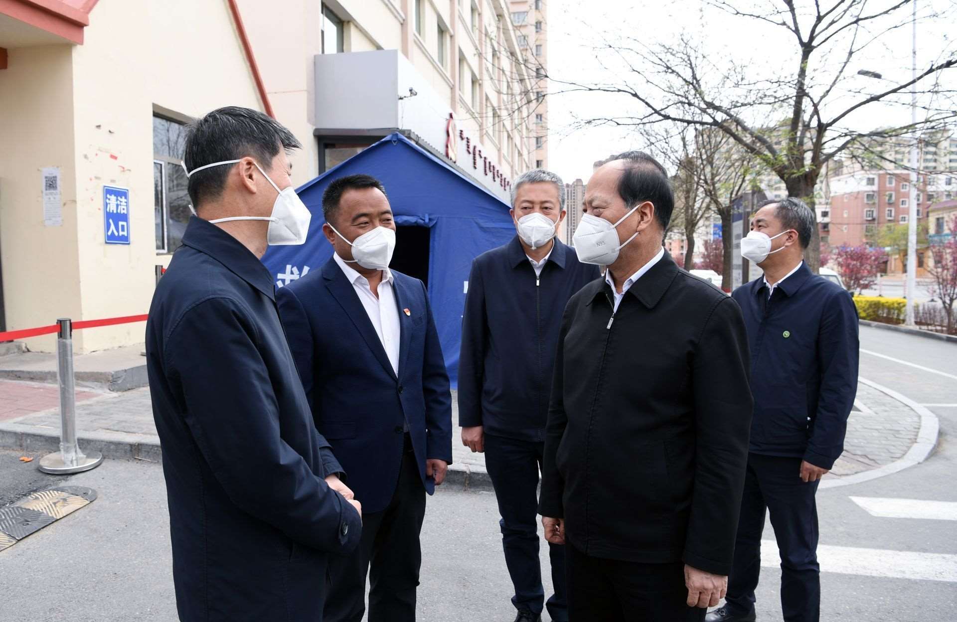4月26日,自治區(qū)黨委書記、人大常委會主任石泰峰來到包頭市九原區(qū)龍苑小區(qū)B區(qū),了解疫情防控封控情況。內(nèi)蒙古日報社融媒體記者 袁永紅攝