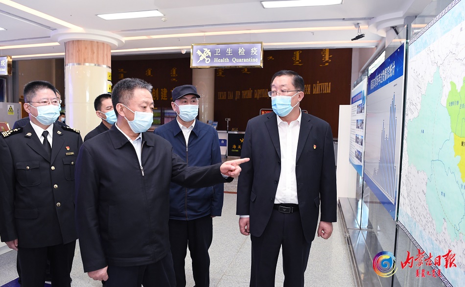 5月16日,自治區(qū)黨委書記孫紹騁來(lái)到策克口岸,詳細(xì)了解口岸建設(shè)和疫情防控情況。記者袁永紅攝