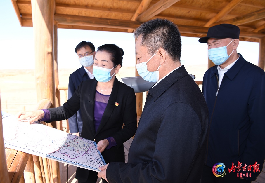 5月16日,自治區(qū)黨委書記孫紹騁在居延海生態(tài)治理區(qū),聽取居延海基本情況及濕地保護情況介紹。內(nèi)蒙古日報社融媒體記者 袁永紅 攝