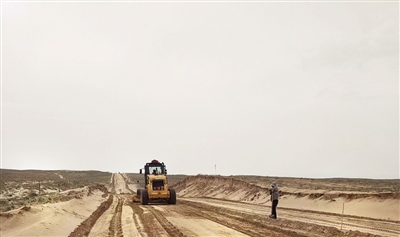 阿拉善左旗錫林高勒至通古淖爾農(nóng)村公路建設(shè)現(xiàn)場 攝影/孟根其其格