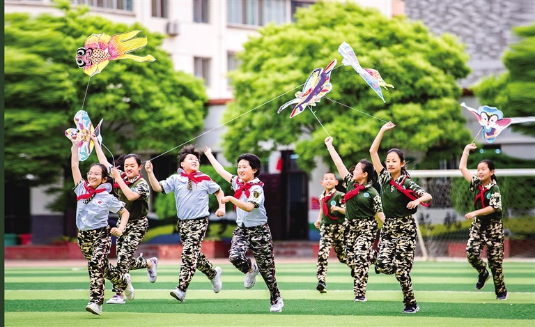 呼和浩特市玉泉區(qū)五塔寺東街小學(xué)學(xué)生放飛彩繪風(fēng)箏。內(nèi)蒙古日報(bào)社融媒體記者王磊攝
