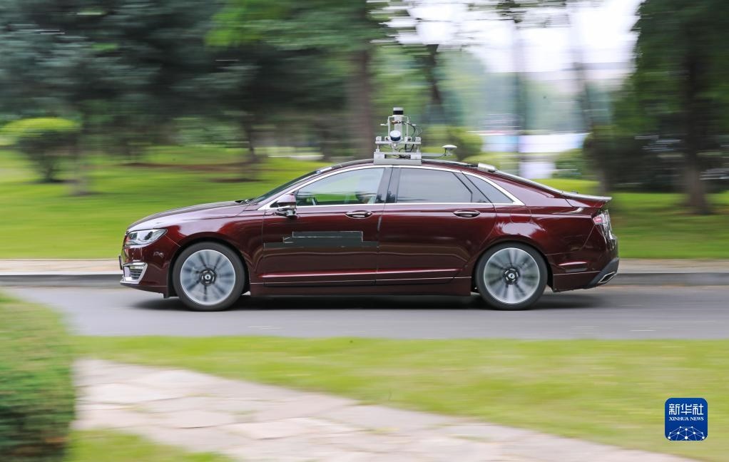 2021年7月9日,在沈陽市渾南區(qū)東軟軟件園,自動駕駛汽車在封閉道路上進(jìn)行行駛測試。新華社記者 楊青 攝