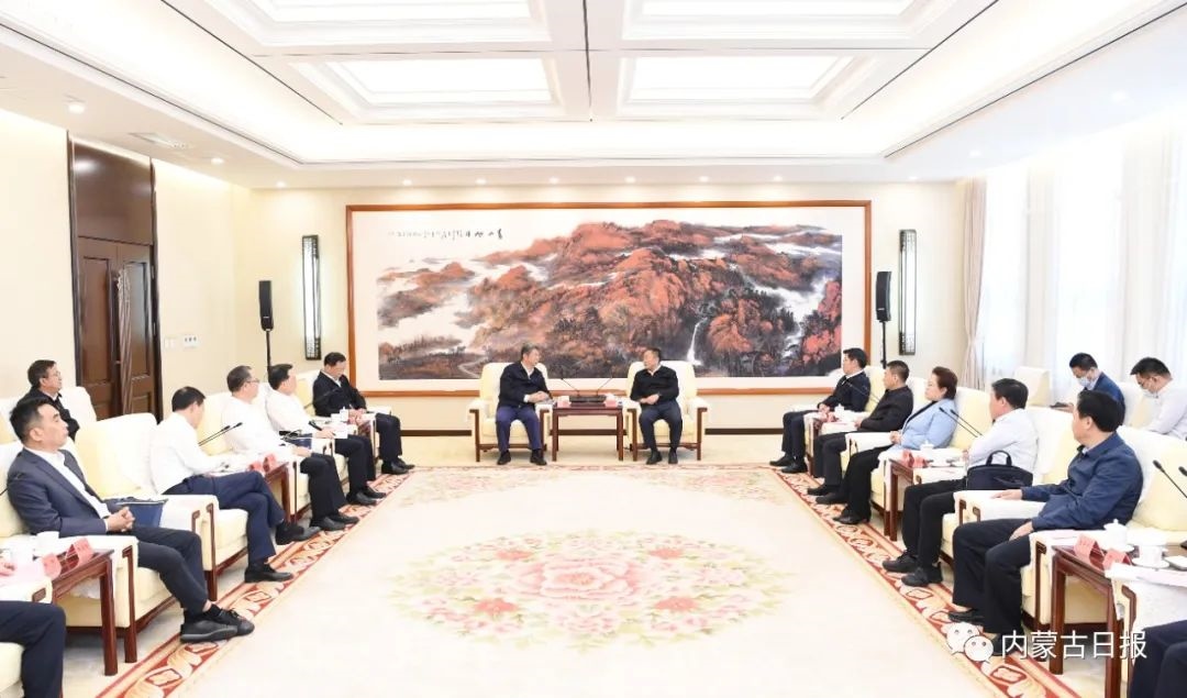 9月27日中午,自治區(qū)黨委書記孫紹騁在呼和浩特會(huì)見中國石油化工集團(tuán)董事長、黨組書記馬永生一行。內(nèi)蒙古日?qǐng)?bào)社融媒體記者袁永紅攝