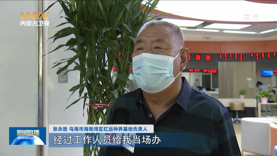 張永勝 烏海市海勃灣區(qū)紅遠(yuǎn)種養(yǎng)基地負(fù)責(zé)人 我原來(lái)想的辦這個(gè)東西挺費(fèi)勁,經(jīng)過(guò)工作人員給我當(dāng)場(chǎng)辦,比我想象的還要快,我非常高興。