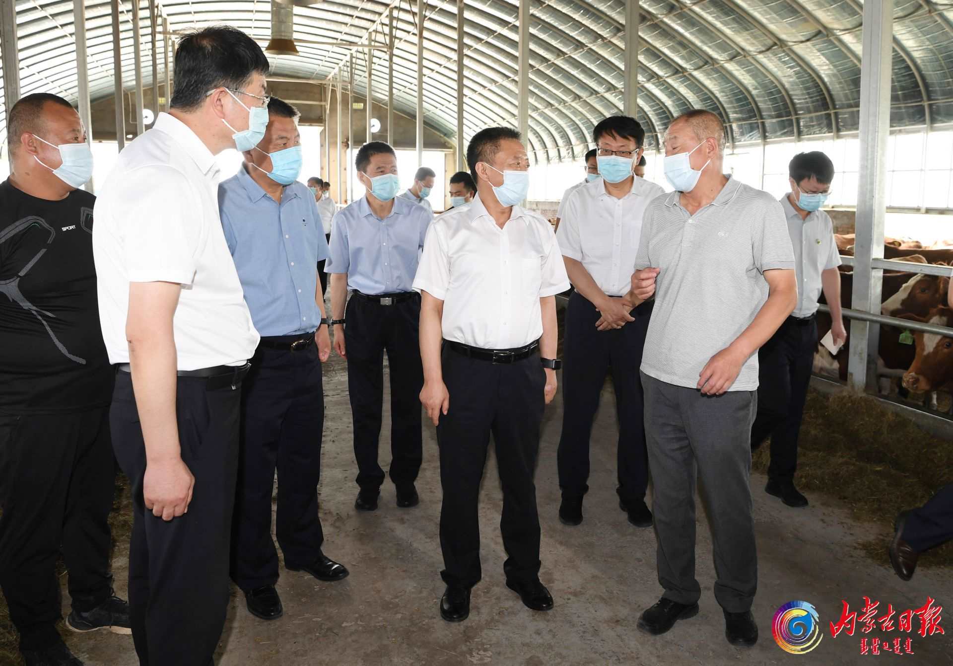 7月4日,自治區(qū)黨委書記孫紹騁來到錫林郭勒盟錫林浩特市沃原良種肉牛繁育基地,了解肉牛產(chǎn)業(yè)發(fā)展情況。記者袁永紅攝