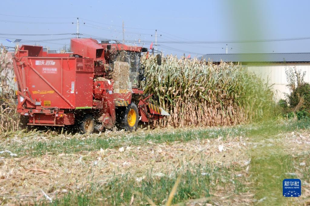 臨河區(qū)干召?gòu)R鎮(zhèn)黃濟(jì)村村民收割玉米。(新華社記者李云平 攝)