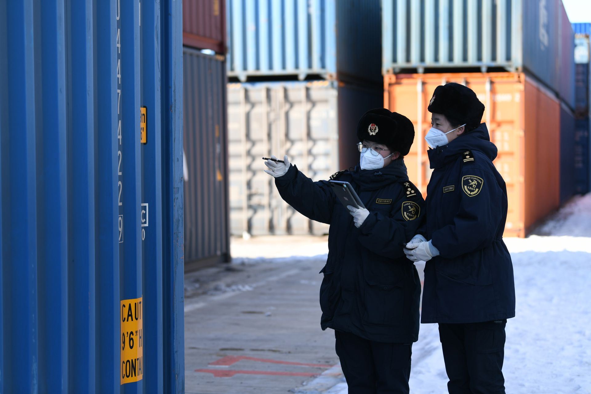 滿載果蔬的車輛,駛出滿洲里口岸。