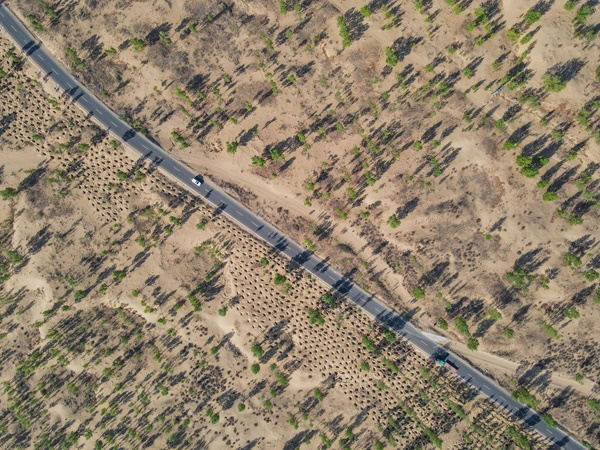 在治沙實踐中,內(nèi)蒙古堅持預(yù)防為主、科學(xué)治理、合理利用的方針,遵循自然和經(jīng)濟規(guī)律,以治沙、治水、治堿為重點,推廣使用鄉(xiāng)土樹種草種,科學(xué)配置防治模式,堅持宜喬則喬、宜灌則灌、宜草則草,喬灌草相結(jié)合,確保了防治的質(zhì)量和效果?!霸谏锘山到饫w維沙袋沙障治沙技術(shù)、低覆蓋度防沙治沙原理及技術(shù)等方面,內(nèi)蒙古達到了世界領(lǐng)先水準(zhǔn)?!眱?nèi)蒙古自治區(qū)林草局治沙造林處處長張根喜說。