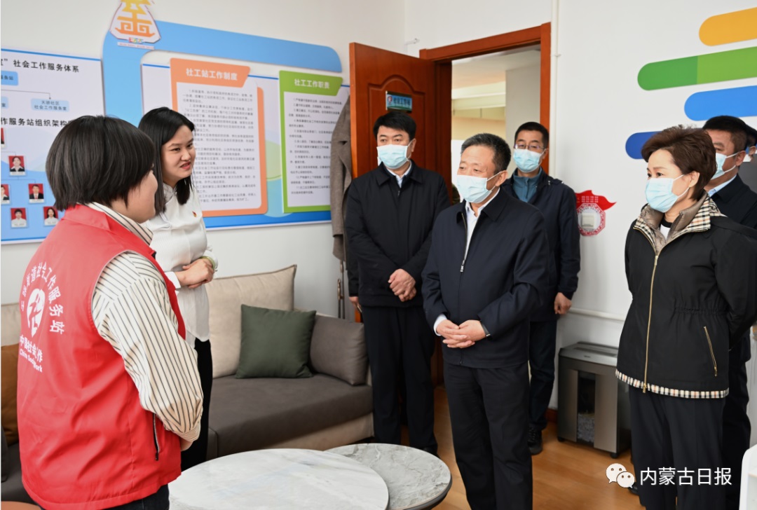4月21日,孫紹騁在鄂爾多斯市東勝區(qū)天驕街道安達(dá)社區(qū)了解基層社會(huì)工作開(kāi)展情況。內(nèi)蒙古日?qǐng)?bào)社融媒體記者馬建荃攝