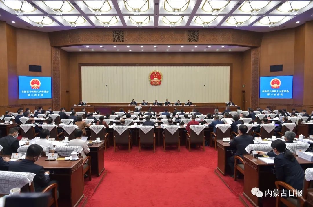 會(huì)議聽取了自治區(qū)人大法制委員會(huì)副主任委員鄭錦春作的關(guān)于《內(nèi)蒙古自治區(qū)建設(shè)我國(guó)北方重要生態(tài)安全屏障促進(jìn)條例(草案)》審議結(jié)果的報(bào)告,法制委員會(huì)主任委員薩仁作的關(guān)于《內(nèi)蒙古自治區(qū)筑牢祖國(guó)北疆安全穩(wěn)定屏障促進(jìn)條例(草案)》審議結(jié)果的報(bào)告;自治區(qū)人大常委會(huì)法制工作委員會(huì)主任張作厚作的關(guān)于《內(nèi)蒙古自治區(qū)建設(shè)國(guó)家重要能源和戰(zhàn)略資源基地促進(jìn)條例(草案)》的說(shuō)明,關(guān)于《內(nèi)蒙古自治區(qū)建設(shè)國(guó)家重要農(nóng)畜產(chǎn)品生產(chǎn)基地促進(jìn)條例(草案)》的說(shuō)明,關(guān)于《內(nèi)蒙古自治區(qū)建設(shè)國(guó)家向北開放重要橋頭堡促進(jìn)條例(草案)》的說(shuō)明;自治區(qū)人大監(jiān)察和司法委員會(huì)主任委員羅虎在作的關(guān)于《內(nèi)蒙古自治區(qū)人民代表大會(huì)常務(wù)委員會(huì)關(guān)于加強(qiáng)新時(shí)代檢察機(jī)關(guān)法律監(jiān)督工作的決定(草案)》的說(shuō)明;自治區(qū)財(cái)政廳廳長(zhǎng)鞠樹文作的《關(guān)于調(diào)整內(nèi)蒙古自治區(qū)礦泉水資源稅計(jì)征方式及稅額標(biāo)準(zhǔn)》的說(shuō)明;自治區(qū)人大財(cái)經(jīng)委員會(huì)主任委員馮玉臻作的關(guān)于檢查《中華人民共和國(guó)統(tǒng)計(jì)法》和《內(nèi)蒙古自治區(qū)統(tǒng)計(jì)管理?xiàng)l例》實(shí)施情況的報(bào)告。