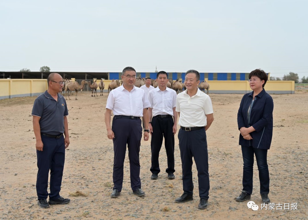8月1日,自治區(qū)黨委書記孫紹騁在阿拉善右旗萬峰駝養(yǎng)殖專業(yè)合作社調(diào)研駝產(chǎn)業(yè)發(fā)展情況。記者馬建荃攝