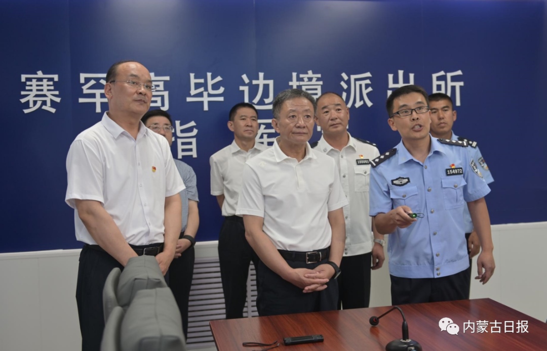 8月13日,自治區(qū)黨委書記孫紹騁在蘇尼特左旗賽罕高畢蘇木邊境派出所調(diào)研邊境管控工作。內(nèi)蒙古日?qǐng)?bào)社融媒體記者 馬建荃 攝