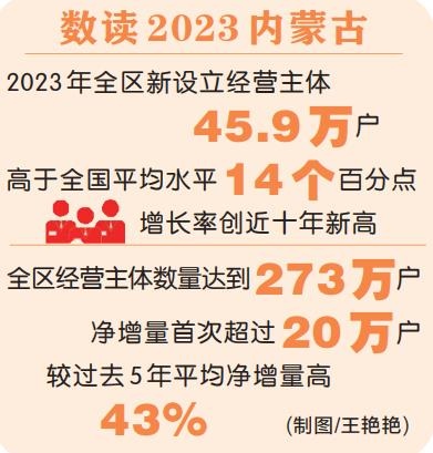 經(jīng)營(yíng)主體迸發(fā)出新活力。2023年,自治區(qū)市場(chǎng)監(jiān)管局出臺(tái)便捷市場(chǎng)準(zhǔn)入助力招商引資九條措施,取消、下放行政審批事項(xiàng)26項(xiàng),減少環(huán)節(jié)113個(gè)。個(gè)體工商戶設(shè)立登記等31項(xiàng)、589項(xiàng)具體項(xiàng)目實(shí)現(xiàn)全區(qū)通辦,申請(qǐng)人可以在“家門口”辦“外地事”,全區(qū)經(jīng)營(yíng)主體呈現(xiàn)數(shù)量增長(zhǎng)、結(jié)構(gòu)優(yōu)化、活躍度提升的良好態(tài)勢(shì)。2023年全區(qū)新設(shè)立經(jīng)營(yíng)主體45.9萬(wàn)戶,高于全國(guó)平均水平14個(gè)百分點(diǎn),增長(zhǎng)率創(chuàng)近十年新高;全區(qū)經(jīng)營(yíng)主體數(shù)量達(dá)到273萬(wàn)戶,凈增量首次超過(guò)20萬(wàn)戶,較過(guò)去五年平均凈增量高43%。在培育壯大經(jīng)營(yíng)主體上,集成金融、用工、創(chuàng)新等各領(lǐng)域15條硬措施落地,小微企業(yè)和個(gè)體工商戶總量分別增長(zhǎng)7.59%和7.3%。在激發(fā)經(jīng)營(yíng)主體創(chuàng)新活力上,推動(dòng)“一站式”服務(wù)進(jìn)園區(qū)、進(jìn)企業(yè),服務(wù)企業(yè)44761家,減免費(fèi)用、節(jié)約成本7154萬(wàn)元?!懊伞弊謽?biāo)認(rèn)證帶動(dòng)377種產(chǎn)品實(shí)現(xiàn)增值,知識(shí)產(chǎn)權(quán)質(zhì)押融資達(dá)到48.21億元。