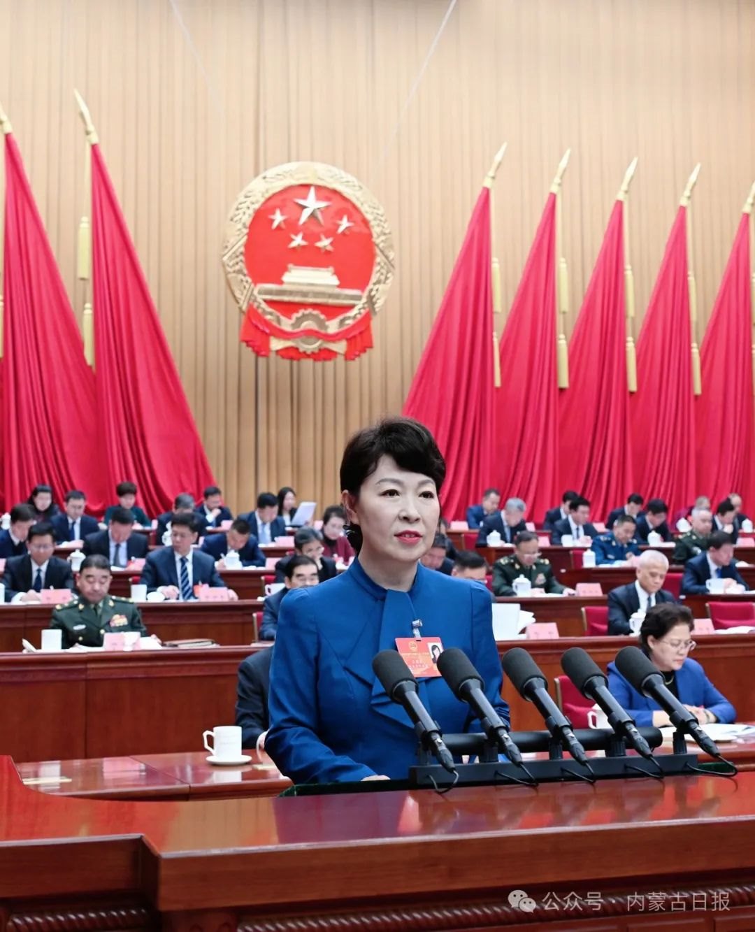 自治區(qū)主席王莉霞作政府工作報告。草原全媒·內(nèi)蒙古新聞網(wǎng)記者韓卿立攝