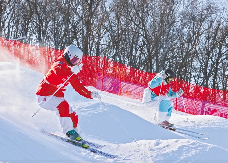 2月19日,在扎蘭屯金龍山滑雪場(chǎng)進(jìn)行的“十四冬”自由式滑雪雪上技巧比賽圓滿收官,當(dāng)天決出公開(kāi)組女子、男子雙人雪上技巧比賽金牌。