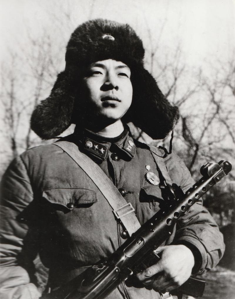 ↑雷鋒(左)在幫助戰(zhàn)友縫被子。