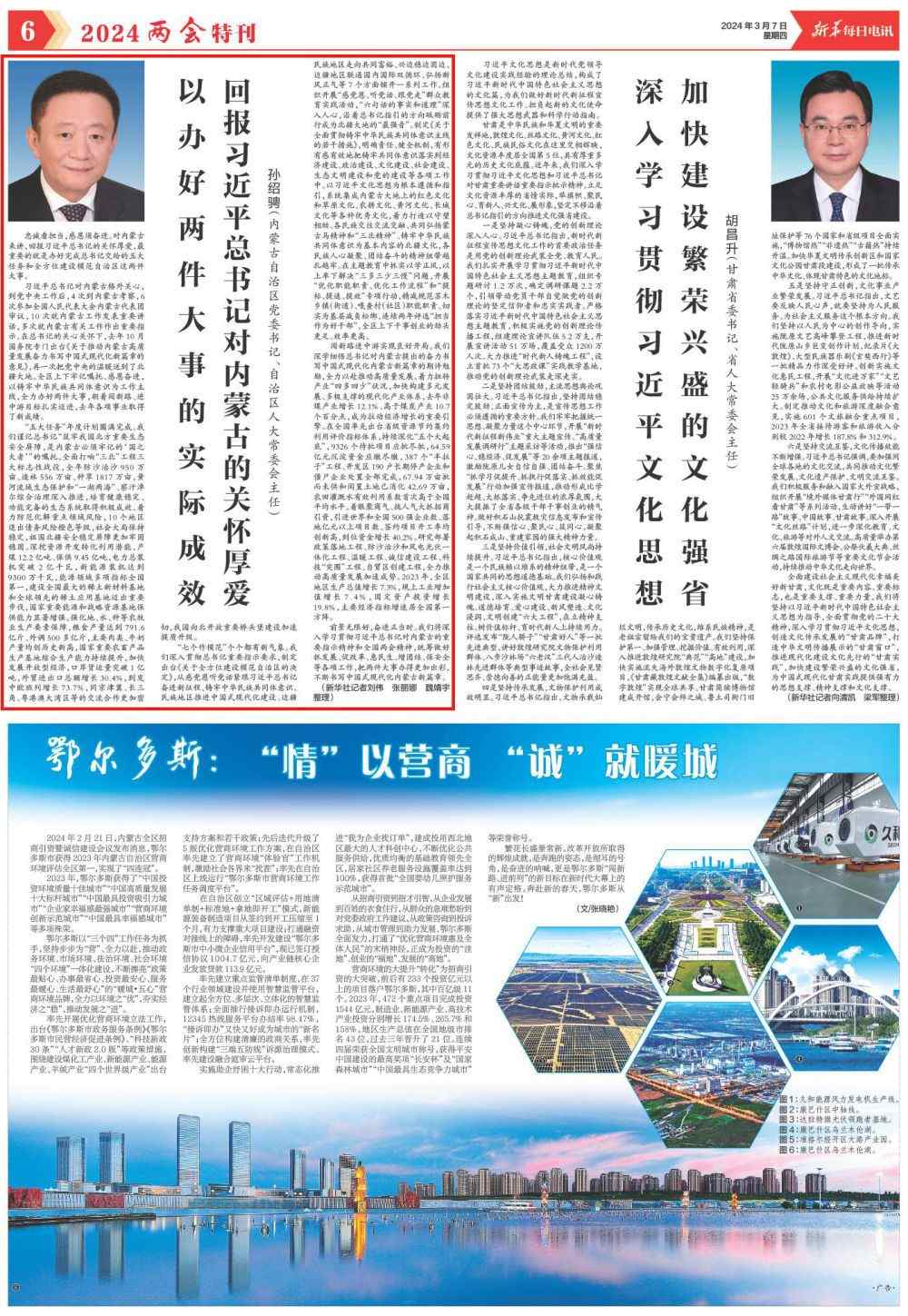 前景無(wú)限好,奮進(jìn)正當(dāng)時(shí)。我們將深入學(xué)習(xí)貫徹習(xí)近平總書(shū)記對(duì)內(nèi)蒙古的重要指示精神和全國(guó)兩會(huì)精神,統(tǒng)籌做好抓發(fā)展、促改革、惠民生、增團(tuán)結(jié)、保安全等各項(xiàng)工作,把兩件大事辦得更加出彩,不斷書(shū)寫(xiě)中國(guó)式現(xiàn)代化內(nèi)蒙古新篇章。(新華社記者 劉偉 張麗娜 魏婧宇整理)