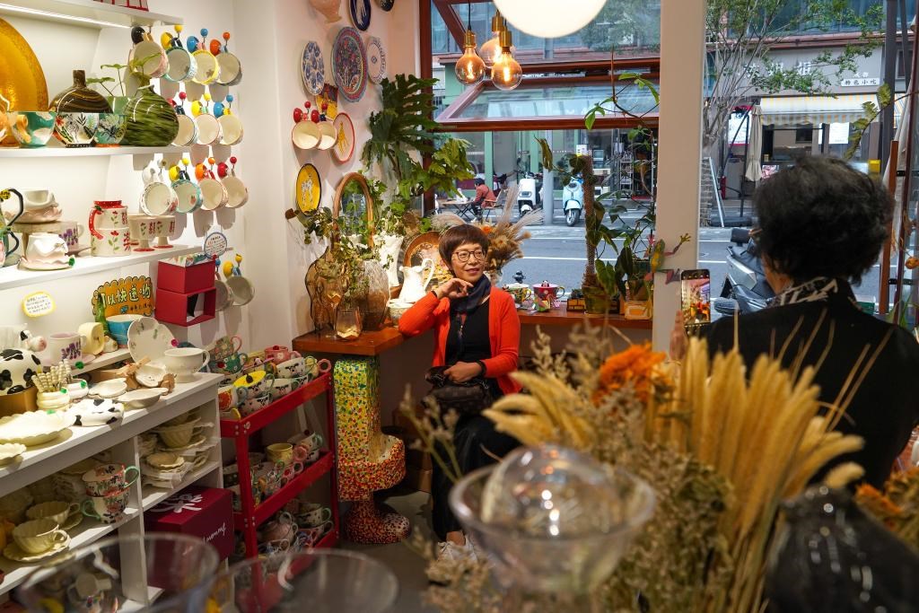 ??2023年10月11日,顧客在成都市武侯區(qū)玉林東路的瓷器特色小店拍照打卡。新華社記者 唐文豪 攝