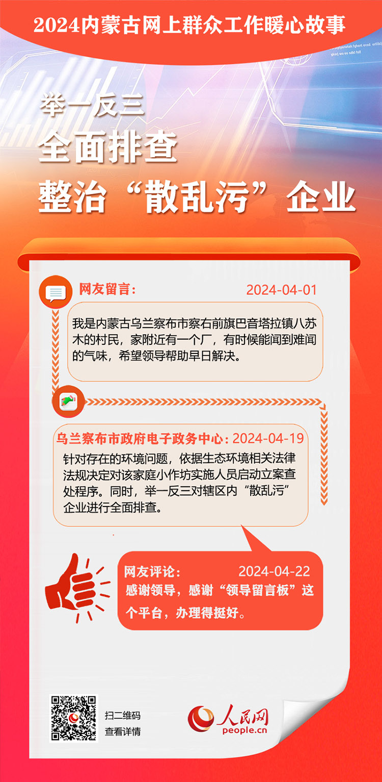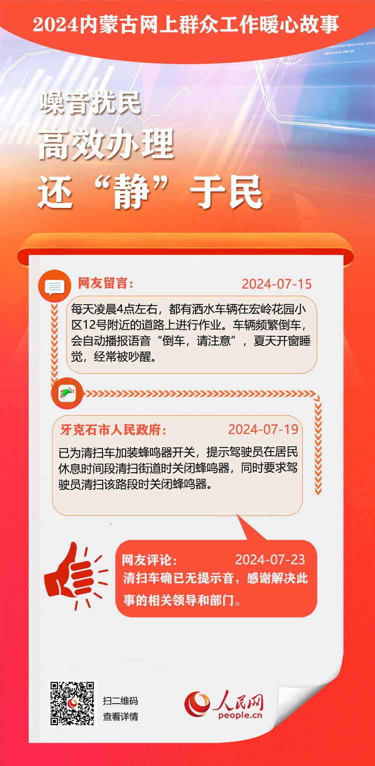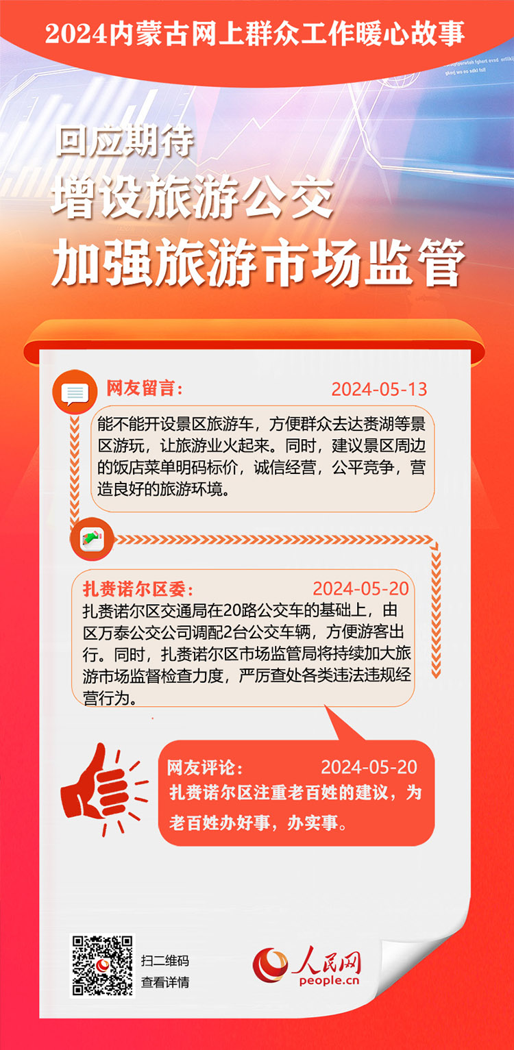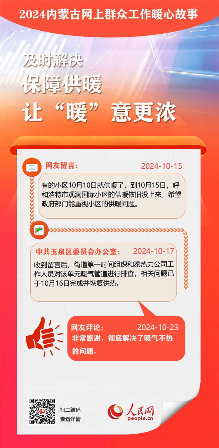 走好走實(shí)網(wǎng)上群眾路線 用心用情為民服務(wù)辦實(shí)事。依托人民網(wǎng)“領(lǐng)導(dǎo)留言板”,內(nèi)蒙古自治區(qū)各級(jí)黨委、政府著力解決網(wǎng)民反映的熱點(diǎn)難點(diǎn)。2024年,一批群眾關(guān)切的急難愁盼問(wèn)題得到及時(shí)解決。人民網(wǎng)內(nèi)蒙古頻道推出特別策劃,盤點(diǎn)過(guò)去一年內(nèi)蒙古網(wǎng)上群眾工作那些暖心事。