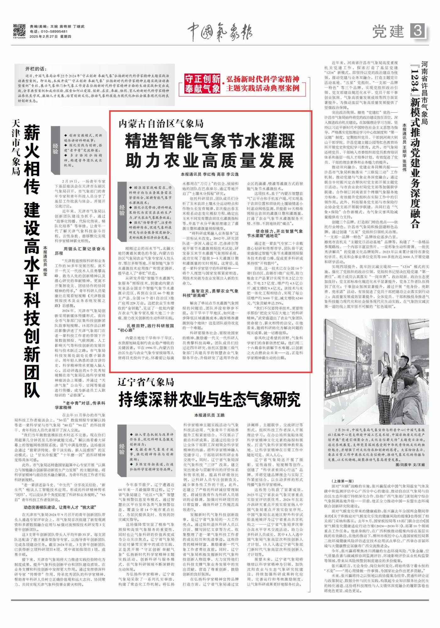 2025年2月27日,《中國氣象報(bào)》第3版刊發(fā)題為《內(nèi)蒙古自治區(qū)氣象局精進(jìn)智能氣象節(jié)水灌溉助力農(nóng)業(yè)高質(zhì)量發(fā)展》的文章,報(bào)道了從研發(fā)升級“智能節(jié)水灌溉氣象服務(wù)”預(yù)報(bào)技術(shù),到建成內(nèi)蒙古突泉縣全國首個(gè)智能氣象節(jié)水灌溉示范區(qū),再到在全區(qū)66個(gè)糧食主產(chǎn)縣、全國14個(gè)省(自治區(qū))推廣應(yīng)用228萬畝,內(nèi)蒙古自治區(qū)氣象局精進(jìn)智能氣象節(jié)水灌溉助力農(nóng)業(yè)高質(zhì)量發(fā)展。