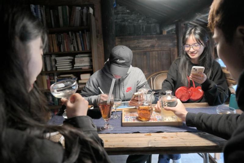 2024年4月9日,年輕消費(fèi)者在福鼎白琳老街“同順泰”茶號品嘗新式茶飲料。新華社記者 林善傳 攝
